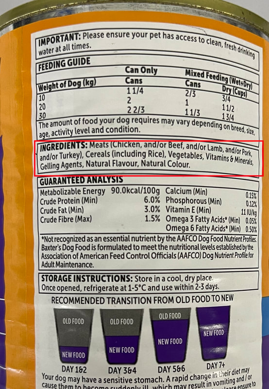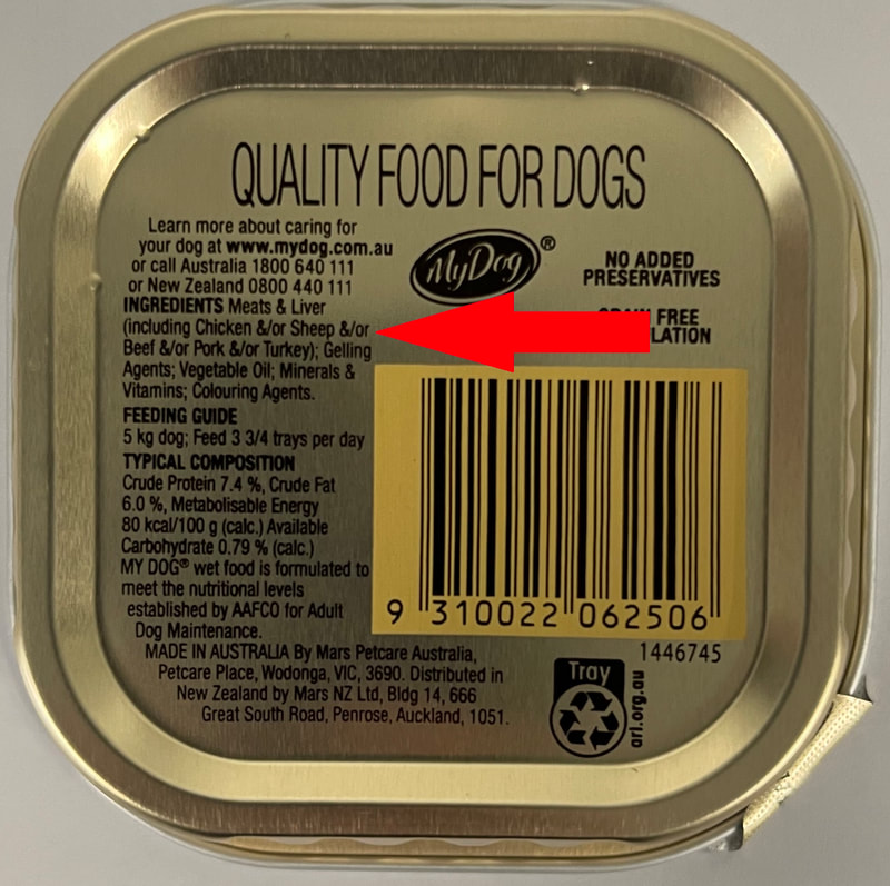 For example, the front of the packaging may indicate the flavour is ‘Chicken’ however on the rear you may find the ingredients include chicken, chicken by products, beef, beef by products.